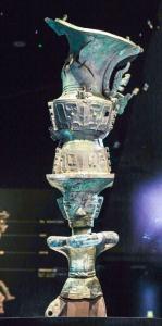 从器物的整体造型上来说,三星堆与中原早期的青铜尊是相似的,只是在细节上有一定的差别,但从尊的使用途径和在祭祀活动中的作用来看,可以说是大有不同。