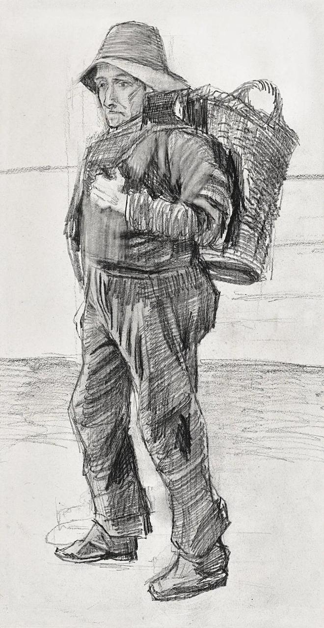 梵高早期素描《背着篮子的渔夫》(Fisherman with Basket on his Back,1883 年 1—2 月)