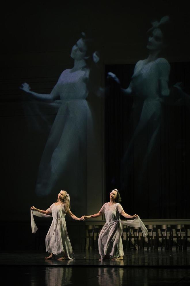 如果说赵明的坚守是艺术圣火的燃动,那么另一群舞者的身影,则在时光褶皱里书写着艺术与生命的另一种对话。11月7日晚,《交际场:回响1978》的舞台上,三面斑驳的墙构筑成一座记忆的舞厅。九位白发舞者立于光影交界处,岁月的河流在他们身上留下蜿蜒的痕迹。当47年前的青春影像投射在透明纱幕上,时空在这一刻温柔折叠——苍老的手抬起,与屏幕上纤细的指尖隔空相触,像一片秋叶触碰春天的花瓣。