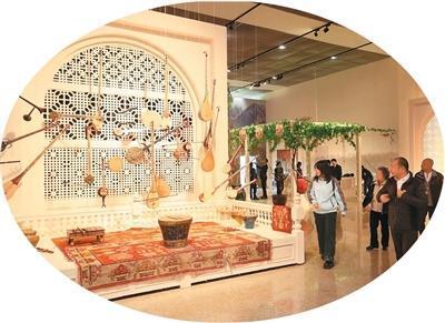 在一旁,质地柔软、图案独特的和田地毯和具有柔嫩、防虫、拉力强、不褪色、吸水力强等特点的桑皮纸毫不逊色,共同为观众呈现和田各族人民的古老智慧结晶。