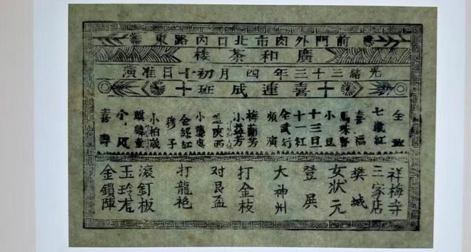 1907年喜连成班在北京广和茶楼的戏单。上海图书馆收藏