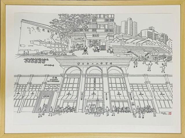 黄根裕是中国钢笔画联盟会员、上海市美术家协会会员。他谈到,钢笔画以线条为骨、细节为魂,自己始终坚持“以线传神、以形表意”,此次展出的80 余幅作品,既聚焦江南水乡的温婉风貌,也融入对城市变迁与历史记忆的捕捉,每一笔都承载着对生活的赤诚热爱。钢笔画作为一种贴近大众的艺术门类,让观众直观领略江南文化的魅力,而红色元素的融入则让展览更具思想性与教育意义。