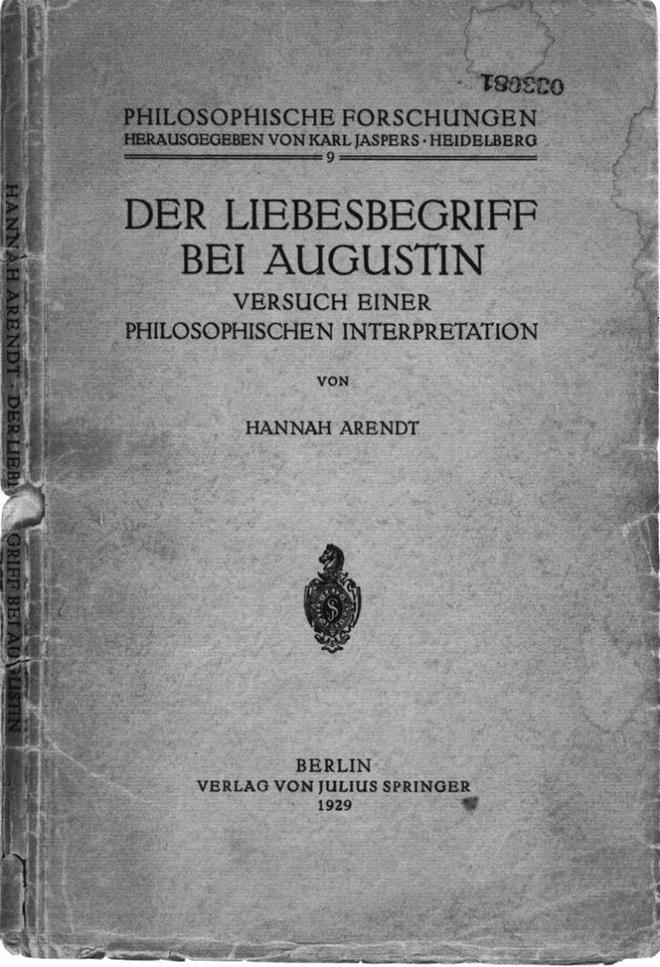 阿伦特的博士论文《爱与奥古斯丁》Arendt, Hannah. Der Liebesbegriff bei Augustin. Versuch einer philosophischen Interpretation. Berlin: Verlag von Julius Springer, 1929.