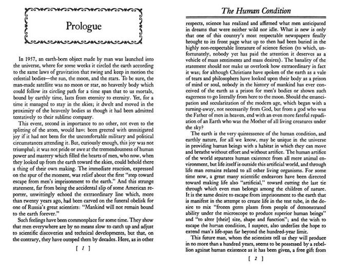 阿伦特论地球与太空(Arendt, Hannah. The Human Condition. Chicago: University of Chicago, 1958, 1-3) 。