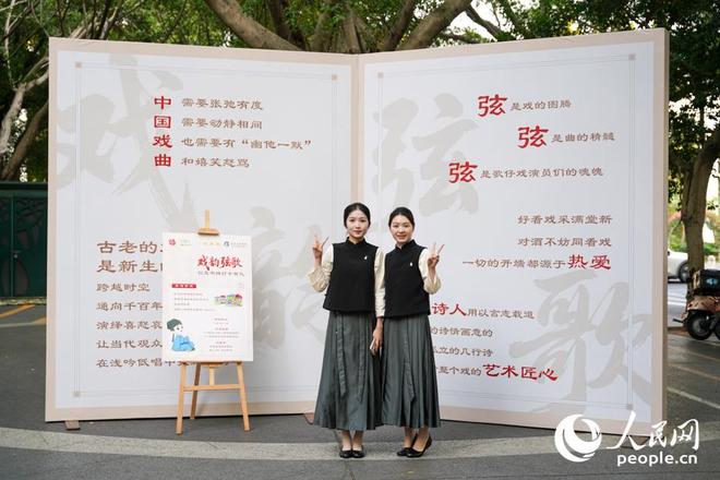 “戏韵弦歌”户外打卡点吸引读者拍照留念。实习生 郑舒尘摄
