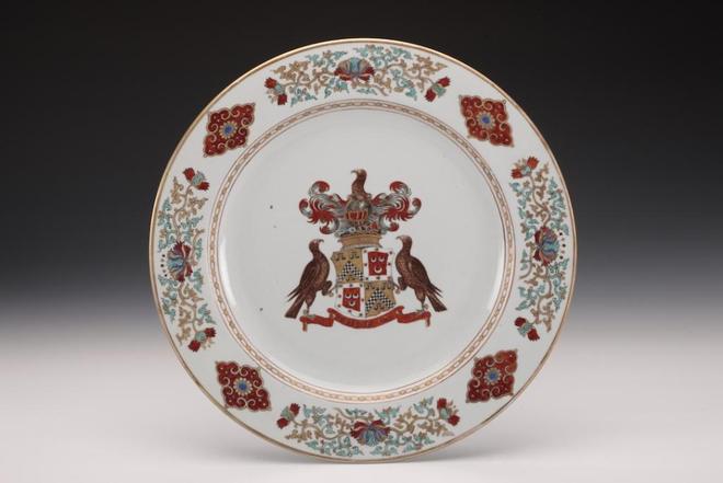 清乾隆广彩英国罗斯伯爵徽章纹大盘