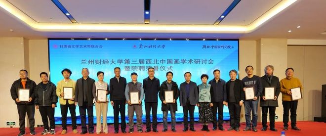 11月29日,由甘肃省文学艺术界联合会与兰州财经大学联合主办,兰州财经大学科技处、艺术学院和西北中国画研究院共同承办的“兰州财经大学第三届西北中国画学术研讨会、院聘荣誉仪式暨‘共生的行迹——西北中国画作品邀请展’”在兰州举办。