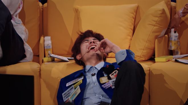 当《技能五子棋》获得嘉宾满票直通下一赛段,张兴朝狂甩马甲,横躺舞台,嘴里呜呜哇哇,不知在喊什么,已经激动到癫了。