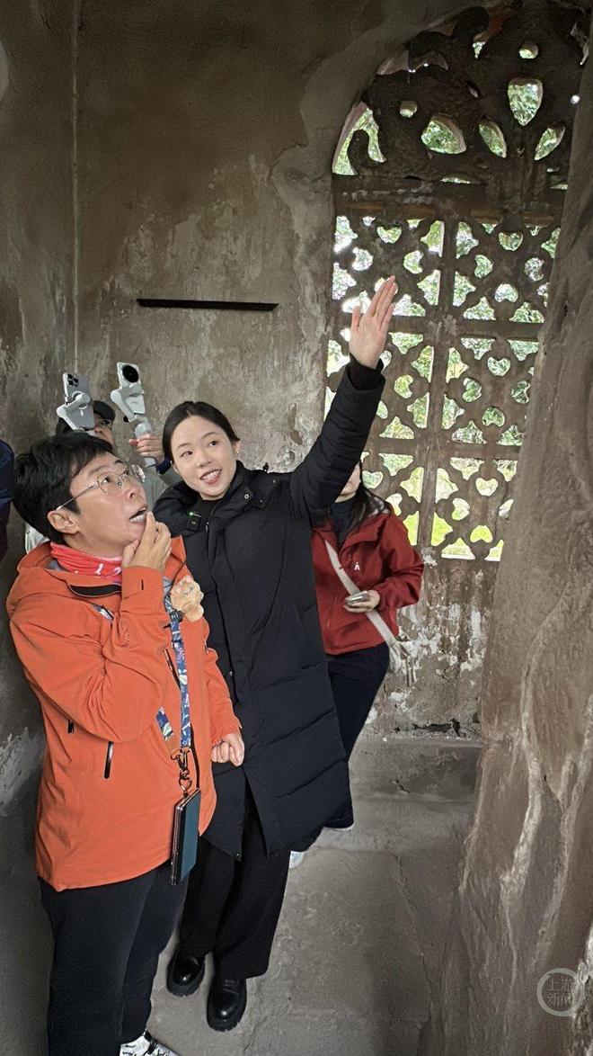 在盘溪原址的现场,蒙曼教授仔细审视了阙身上依然清晰可见的浮雕图案,和讲解员一起跟大家分享了其文化内涵。