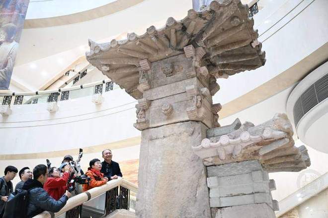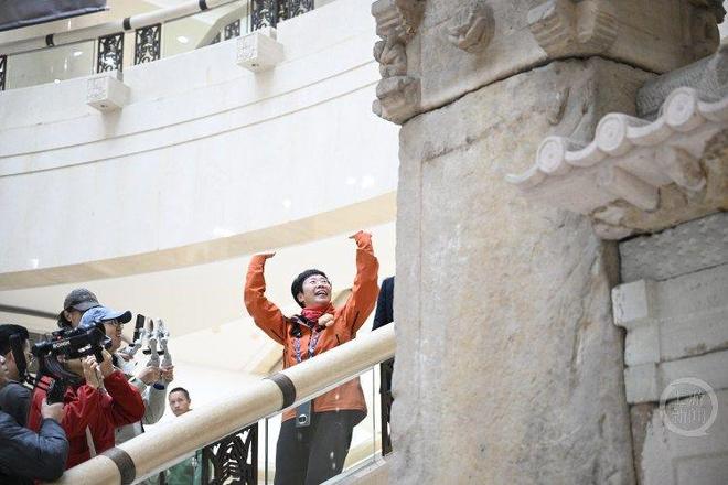 5日一早,蒙曼教授一行走进重庆中国三峡博物馆后,驻足的第一个打卡地就是镇馆之宝——乌杨阙。“我们仔细看可以发现,整个乌杨阙其实是由脊饰、阙顶盖、枋子层等一共七部分构成。”在现场讲解的娓娓道来中,“汉风遗韵”可以说是扑面而来。蒙曼沉浸其中,兴致格外高昂,围着左右两边的阙身仔仔细细看了好几圈。