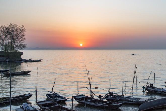 暮色渐渐弥漫开来,西边的晚霞把湖面染成一片蜜色,归巢的鸟群从湖面上掠过,翅尖沾染了金红色的光辉。渔民们收网的吆喝声在暮色中回荡,惊起了芦苇荡里成群的野鸭。它们“嘎嘎”地叫着,拍打着翅膀飞向天空,那翅膀拍打的声音好似下起一场急雨,转眼间又化作天边的黑点。