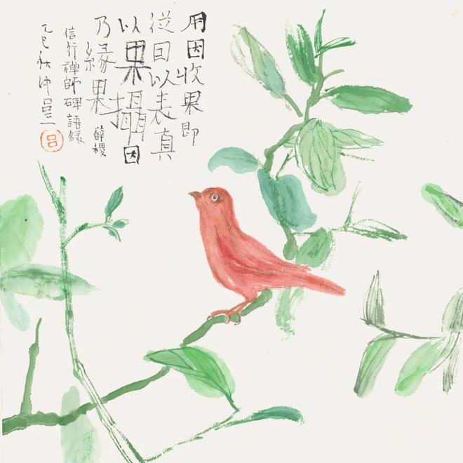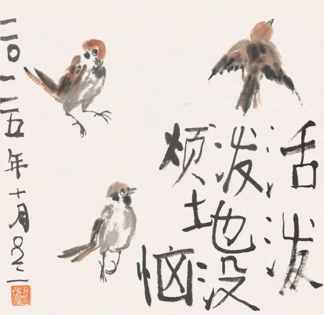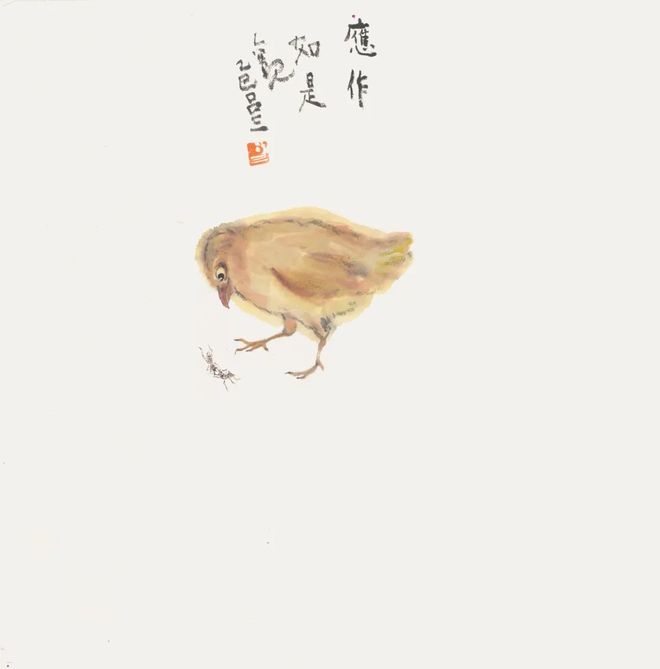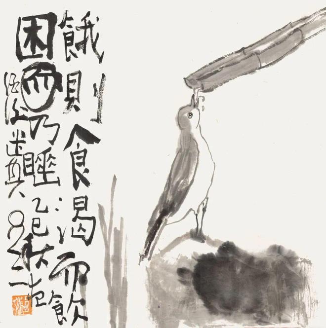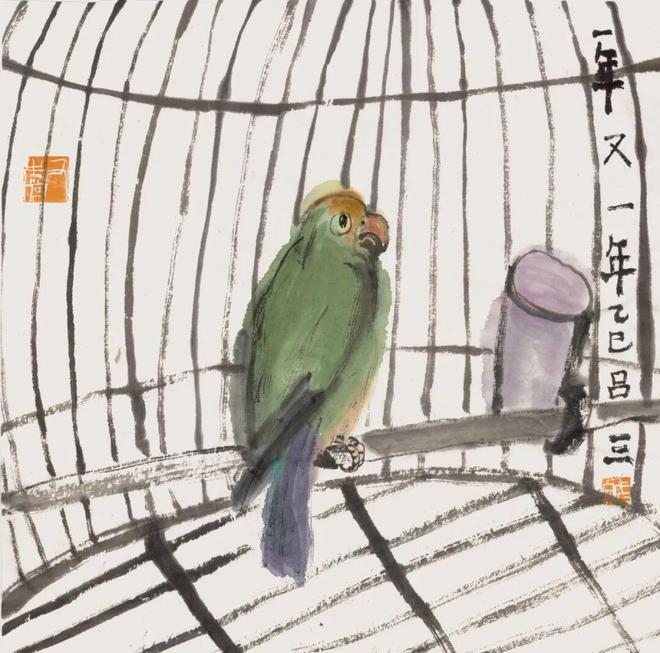 鸟说话时,用不着张嘴,为切题意,我将其嘴张,且吐舌。画毕竟不是生活的简单描摹。