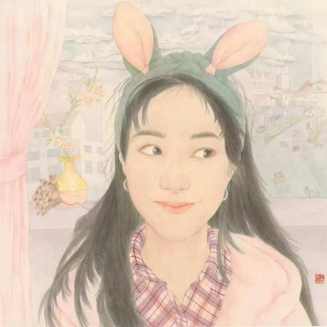 王天瑜 《表情包之一》 纸本工笔 55cm×55cm 2020年