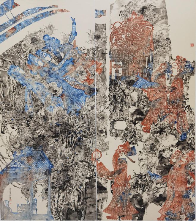 王丹 《粉墨-2》 纸本彩墨 239cm×199cm 2024年