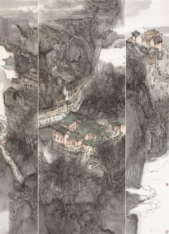贺喜 《大岳绝壁悬宫纪游》 纸本水墨 234cm×160cm 2025年