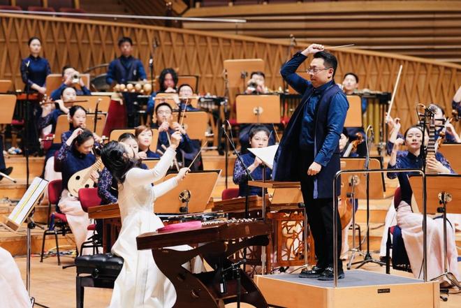 此外,三首协奏作品各具特色。陈欣若新创的《铮铮》为曹蕴量身定制,首次上演,通过扬琴与民族乐队的互动,以刚柔并济的笔触展现古今相通的女性力量。王瑟创作的《落花·夜》以扬琴如歌的吟唱与乐队铺陈的夜色交融,营造出凄美深邃的意境。作曲家张朝的《第一扬琴协奏曲——盘古》完成上海首演,通过扬琴与乐队的对话,展现“盘古开天”的精神意象。