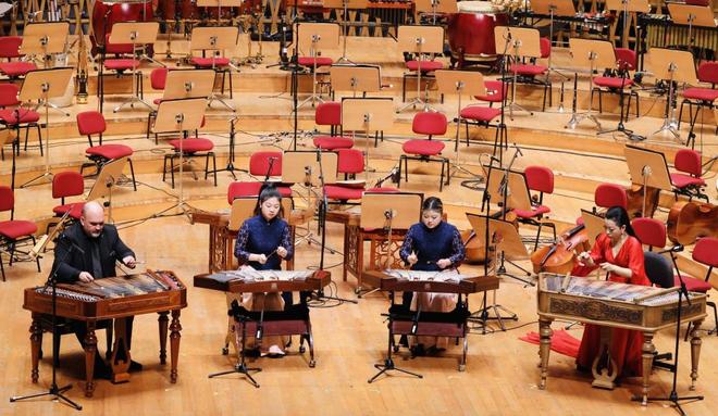 12月7日晚在上海交响音乐厅,上海民族乐团扬琴首席曹蕴带来“扦槌百炼”扬琴独奏音乐会。音乐会聚焦“扬琴家族”,以扬琴、桑图尔、辛巴龙三种同源击弦乐器为纽带,展开一场贯穿古今、跨越东西的音乐对话。