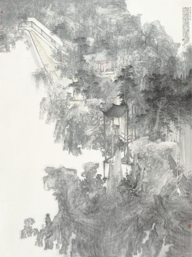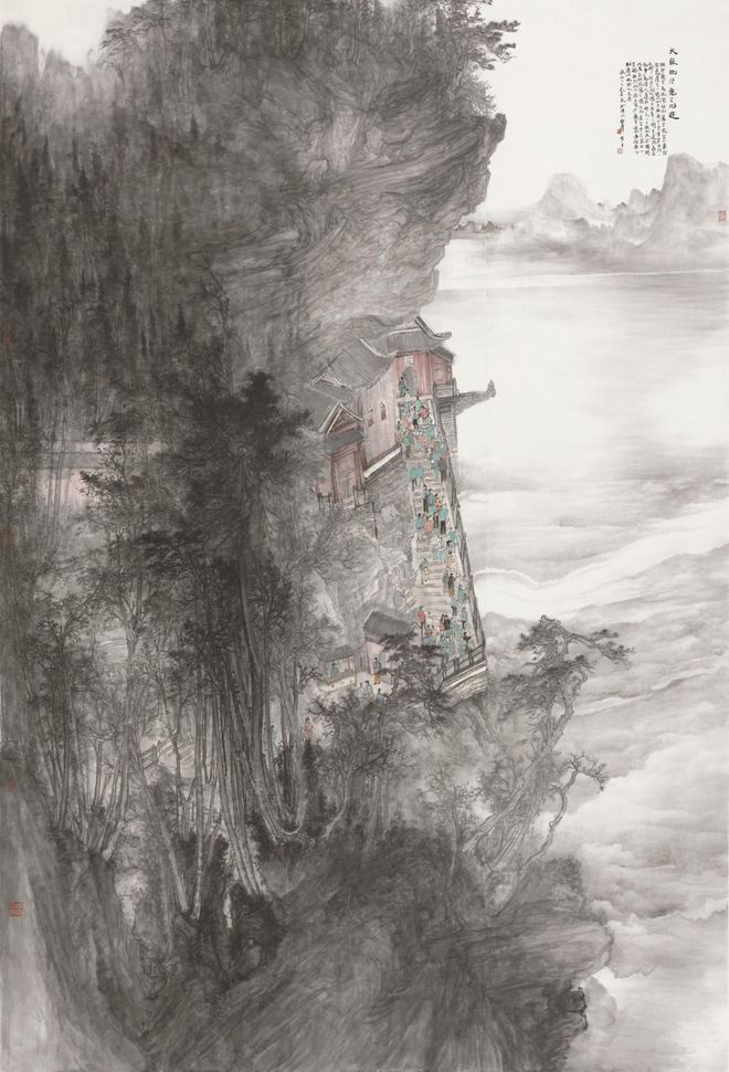 贺喜 《大岳绝壁悬宫纪游》 纸本水墨 234cm×160cm 2025年