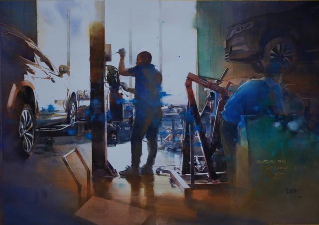 真正与水彩结缘,是在2011年。一次偶然的机会,他突然想起童年画画的纯粹快乐,便重新提笔。他总在夜晚独自伏在家里的写字台上涂涂画画,画自己的手,画身边的物品,画自己看到的任何场景。“我最早的模特是宜家的一个木头小人,它是可活动的,经常被我折腾出各种古怪姿势来做绘画练习。”他说。