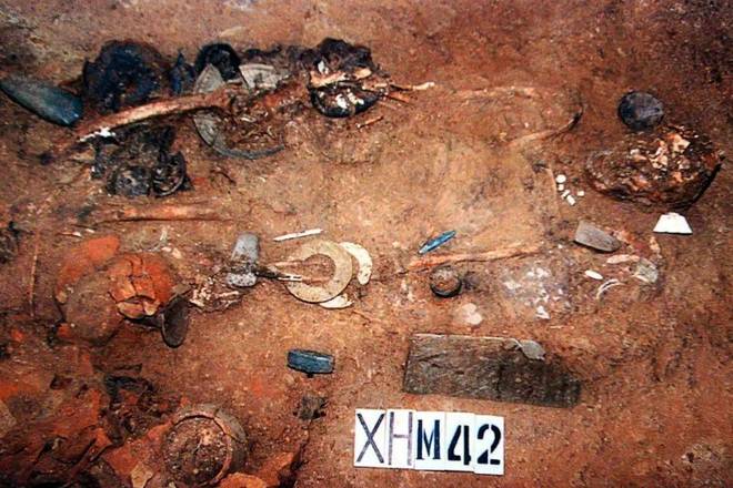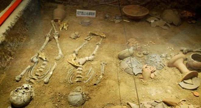 殉人的位置、人数、年龄、性别也有一定规律可循。20号墓(随葬品66件)、34号墓(随葬品57件)、50号墓(随葬品70件)均殉葬2人,或为少年,或为幼儿。殉人均仰身直肢,横置于墓主脚下。较为特殊的是16号墓,墓中有随葬品48件,殉葬17岁以下的男女少年各1人,但墓主骨架却没有找到。在此墓上方还有3个并排陪葬的幼儿。专家推测此墓墓主身份高贵,但很可能死于战争,尸体没有回乡,故此下葬时只能直接葬入殉人和猪狗骨架,墓中没有尸体。