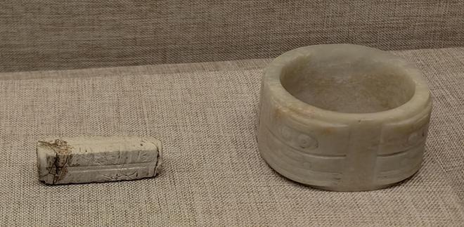 花厅遗址出土的遗物有的同时具备大汶口与良渚两种文化因素,比如有的陶豆下半部为大汶口风格,中部和上部是良渚文化风格,考古学家将这种陶器称为花厅遗址的“折衷陶器”。