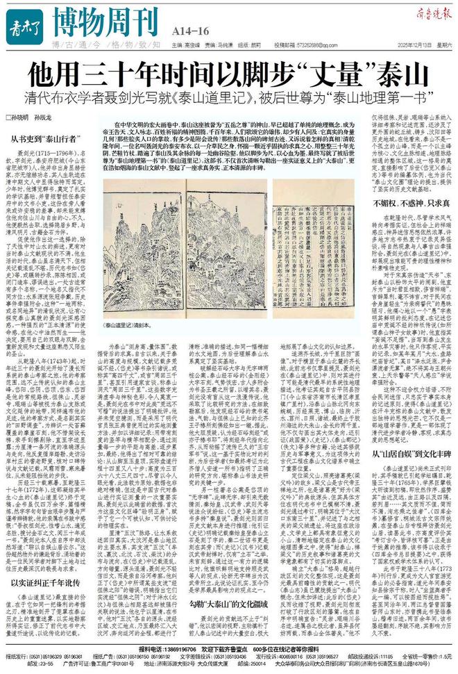 聂剑光的贡献远不止于“纠错”,他以宏阔的视野,主动填补了前人泰山记述中的大量空白,极大地拓展了泰山文化的认知边界。