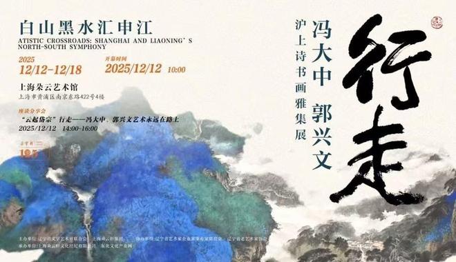 12月12日,“行走——冯大中、郭兴文沪上诗书画雅集展”在上海朵云轩艺术馆(黄浦区南京东路422号4楼)开幕。展览以“诗书画三位一体”为核心命题,精选冯大中工笔重彩与水墨佳作、郭兴文书法题跋与诗赋作品,呈现“诗画相生”的古典美学意蕴。