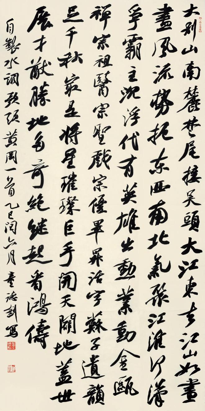 主办方介绍,本次展览遴选了生活在长江流域的书画艺术家们创作的45幅风格各异的书画佳作,不仅展现了一幅气象万千、生生不息的长江万里画卷,也是对江山壮丽、人民豪迈的新时代的热情讴歌与礼赞。从展览中,可以较为全面地领略到在长江文化浸润下形成的壮阔、激扬、浪漫、多姿多彩的长江画风与长江书风。
