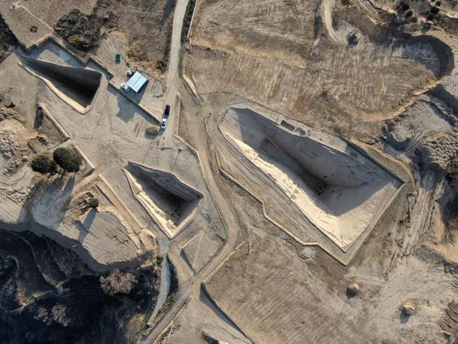 12月8日拍摄的陕西清涧瓦窑沟墓地M8号墓(无人机照片)。新华社记者 李一博 摄