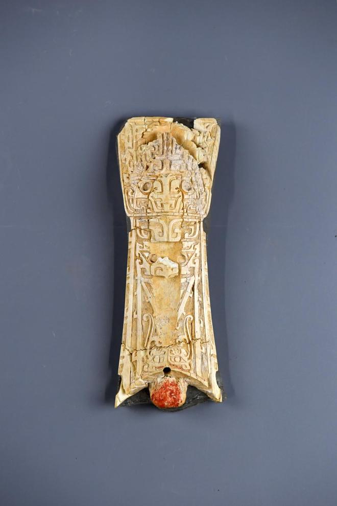 12月8日拍摄的陕西清涧瓦窑沟墓地出土雕花象牙器。新华社记者 李一博 摄