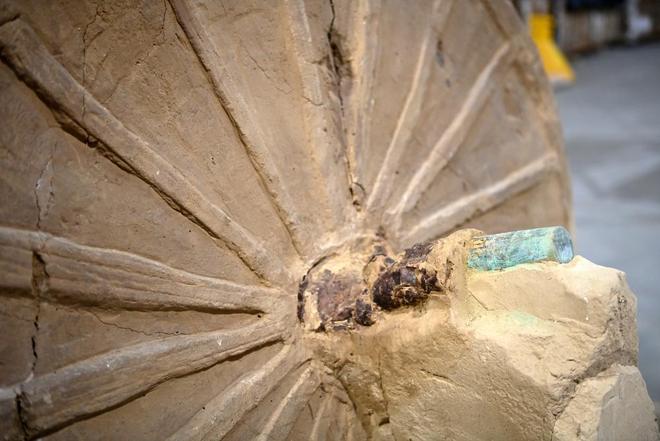 12月12日在陕西省考古研究院文物保护实验室拍摄的瓦窑沟墓地M3号墓出土双辕车(局部)。新华社记者 李一博 摄