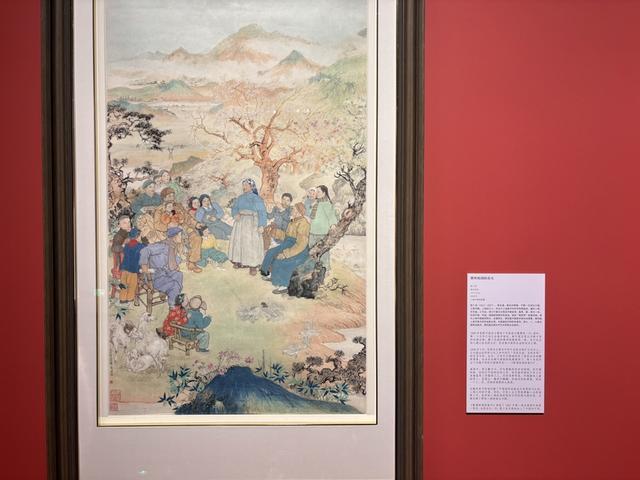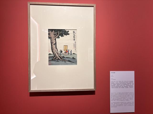 走进程十发美术馆,丰子恺的作品《饮水思源》映入眼帘。画面中,一口朴素的水井旁立着一块木牌,上书“吃水不忘挖井人,时刻想念毛主席”,标志性的简洁构图与清新色调,传递出朴实的生活气息。这是丰子恺1961年走访江西瑞金“红井”后留下的笔墨。与之相邻的,是程十发在1956年创作的《歌唱祖国的春天》,工农兵齐聚一堂,吹笛、打板、歌唱,笑容洋溢。这两幅画一同展出,呈现一种相似的理念:艺术当为人民,笔墨当随时代。