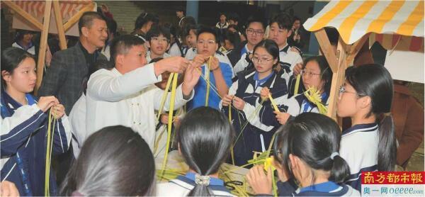 岭南棕编传承人现场展示“一秒编蚱蜢”绝技。