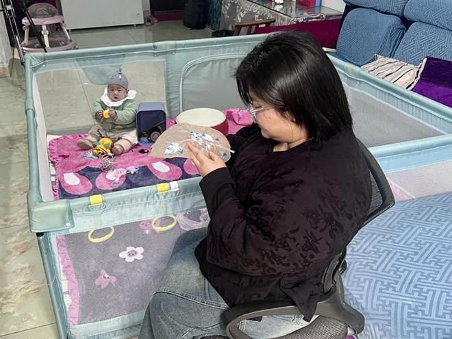 对于龙林林这样的绣娘来说,刺绣不仅是谋生手艺,更是兼顾家庭与事业的理想选择。她有三个孩子,最大的上小学五年级,第二个在读幼儿园,最小的才几个月大,“需要时刻照顾孩子,没法外出工作,而居家刺绣特别灵活,孩子休息时就能做,既能挣钱又不耽误管娃。”