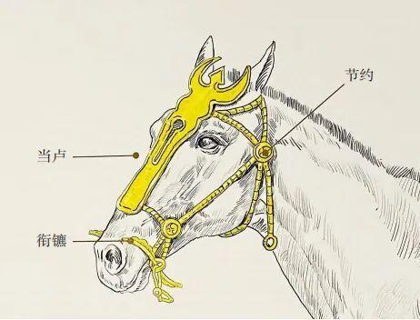 当卢通常固定于马额头中央偏上的位置,可以作为面具使用,起到一定的防护效果;也可以作为装饰使用,使马更美观、华贵的同时,凸显出马主人身份地位的高贵。