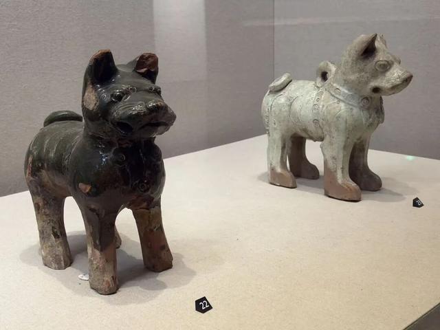 漯河市博物馆中,也有一对“好朋狗”,这对绿釉立姿红陶狗,狗身均满饰青釉,昂首竖耳,尾巴卷曲,四足直立,腰部饰钮。双双出镜,萌力加成,爱宠人士狂喜,远程喊话博物馆,可千万不要让他们分开呀!