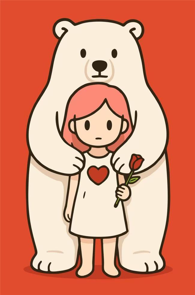 《白熊与玫瑰》以白熊环抱小女孩的姿态,构建出一种安静而坚定的保护关系。白熊并非力量的象征,而更像一种无声的支撑——它站在身后,不言说、不介入,却始终在场。小女孩手中的玫瑰,既脆弱又鲜明,象征着情感与自我表达。在这组关系中,保护并非控制,温柔也并非软弱,而是一种允许脆弱存在的力量。作品呈现的是一种被承接的状态:当个体被稳稳托住,情感才得以被保留与给予。