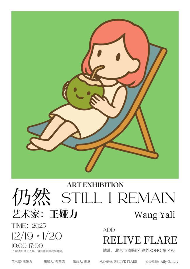2025 年 12 月 19 日,艺术家王娅力(Wang Yali)个展 《仍然 Still I Remain》 在北京朝阳区建外 SOHO 的 RELIVE FLARE 正式开幕,展览将持续至 2026 年 1 月 20 日。
