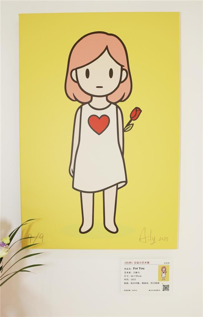 自 2021年起,艺术家开始持续创作以 “Aily” 为代表形象的系列作品,对情感经验与内在心理世界进行深入探索。王娅力表示,Aily 的形象源自一次深度催眠的心理治疗经历。在那次体验中,她进入内心最深处的“海底”,那里寂静而孤立。就在最暗的时刻,一束光出现,一个小女孩张开双臂迎接她。那一刻,她意识到:即使在最孤立的地方,也依然存在一个能够承接、安抚自己的内在力量。Aily,正是这一内在自我的化身。