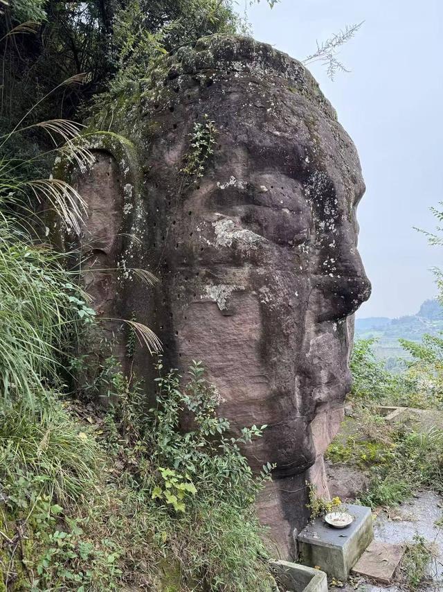 在龙泉山头深处,藏匿着张飞营摩崖造像,仅有一个“弥勒佛头”石刻。周边由于采石场开发,导致岩层破碎,佛头显得格外明显。据专家分析,唐代佛教兴盛,崇拜弥勒佛,先后有乐山大佛、潼南大佛、资阳半月山大佛的开凿,至晚唐,或许是受限于战乱等因素没有多余的钱财人力再开凿,故此处的张飞营摩崖造像仅有佛头。通过实地观察和测量对比,结合四川石窟背景,专家推测张飞营摩崖造像或为成都地区最大的弥勒佛头摩崖造像。
