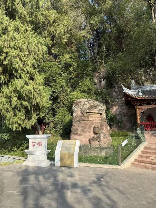 专家介绍,该萌狮石刻雕刻于清朝道光三年(1823年),狮身坐西向东,倚山临河,高6.5米、宽3.37米、长4.7米,是亚洲最大的石狮。其呈现官狮与民狮相结合的独特风格,萌趣十足。在文物考察中萌狮被确定为文物,原址保留,为了保护石狮,天府机场跑道北移了300米。