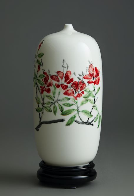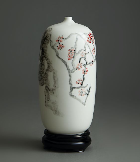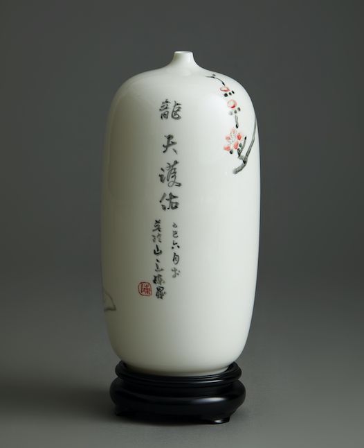 除此之外,今年还有两件重磅作品——执行院长陈晟手作的“福悦”手绘白瓷梅瓶、“如意”丝网版画。