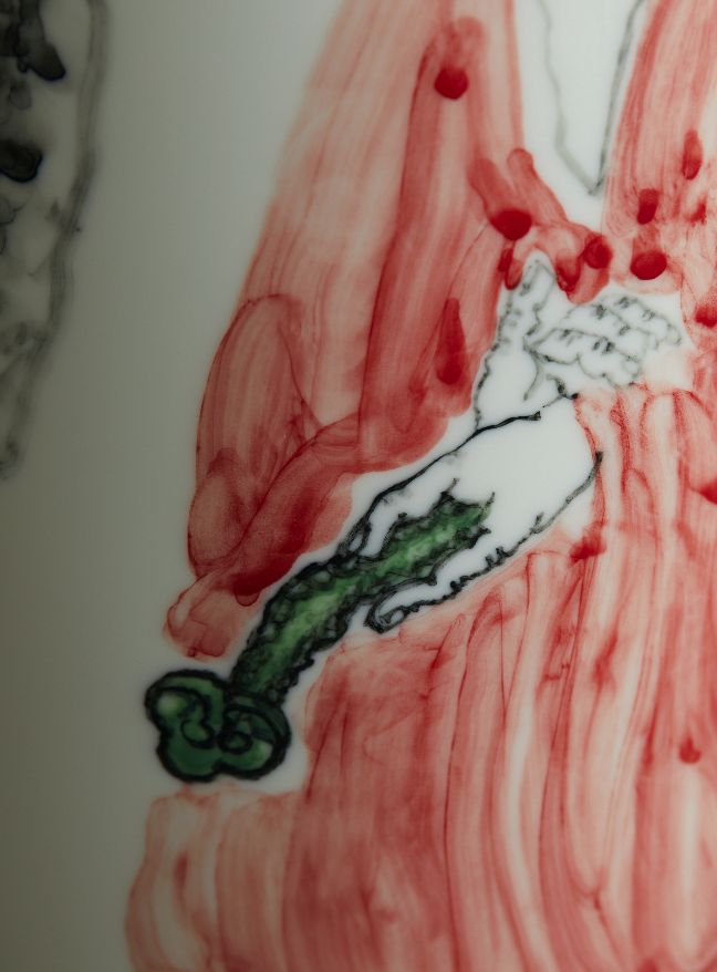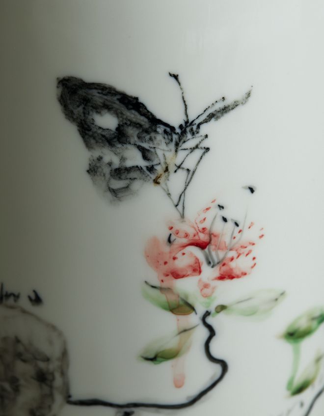 他说,这些画在白瓷素烧胚上的画,状态好的时候,三四个小时就能一气呵成;状态不好的时候,得画一两天,很熬人。