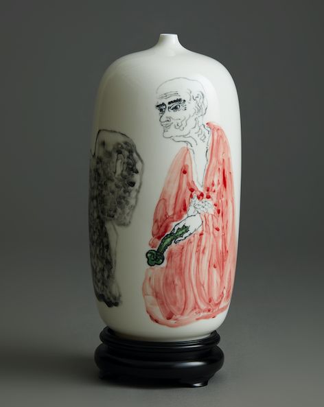 “禅悦”手绘白瓷梅瓶