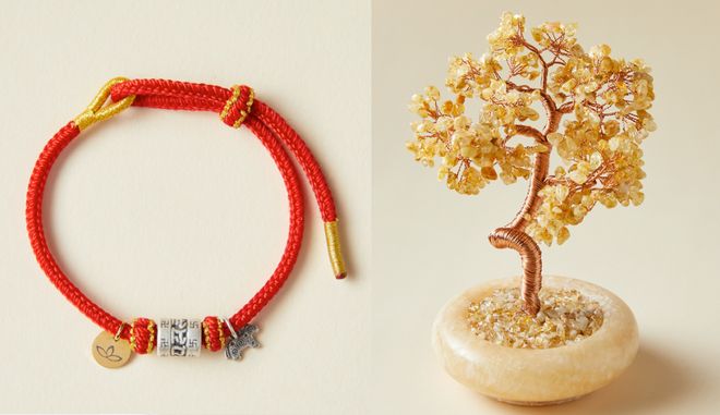 包含:水晶发财树1棵、马年“福禄”红绳1根