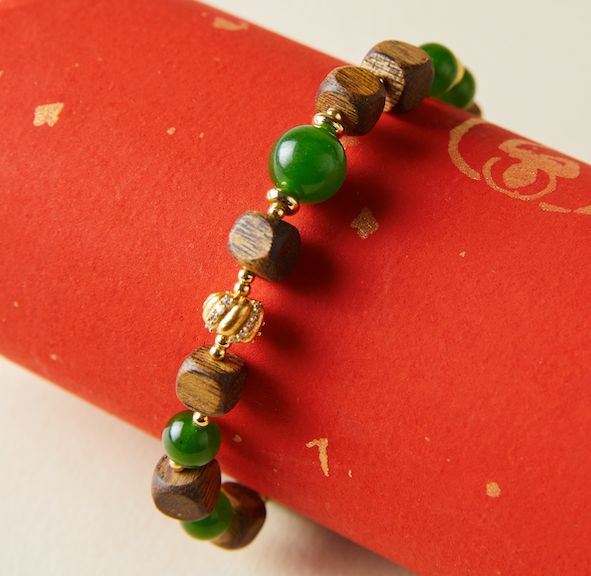海南沉香,有丰富的天然甜凉之香,方块造型别致。搭配的玉石色泽鲜润,质地细腻温润,兼具自然质感与文化韵味。