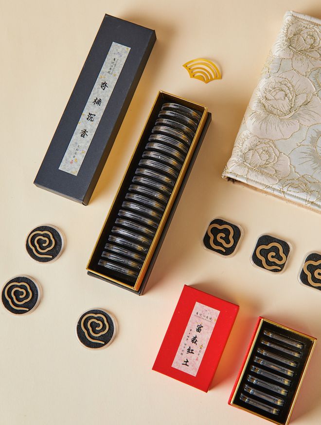 这两款盘香,采用沉香细碎末磨压成,很天然。香雾如线如丝,袅袅娜娜,很有诗意。
