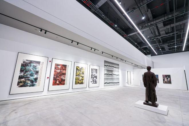 展览以“文脉传承”“当代转译”和“全球对话”三个篇章,简略勾画了上海在中国现当代美术史书写中所扮演的非凡角色。“文脉传承”以上海大学藏品为基础,将海派绘画、书法与早期油画置于艺术史的源头位置,呈现上海近现代艺术传统所奠定的审美结构与价值体系。“当代转译”聚焦当下多媒介艺术在城市经验、材料革新与观念更新中的实践,展示海派精神如何穿越时代,被重新翻译为当代视觉语言。“全球对话”进一步将目光投向国际语境,使“新海派”从地域性扩展为一种跨文化的开放机制,折射上海作为全球城市的文化辐射力。