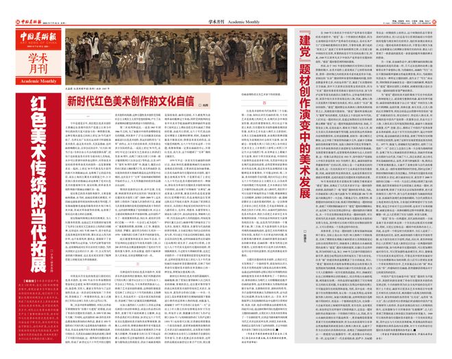 一、回溯历史记忆,赓续红色文脉。在重大历史节点,《中国美术报》始终以美术视角介入国家叙事。2025年正值中国人民抗日战争暨世界反法西斯战争胜利80周年,本报策划了“回望烽火历史 传承抗战精神”专题。这一伟大历史节点,不仅承载着中华民族对苦难与抗争的深切记忆,更呼唤着对民族精神的赓续与弘扬。作为历史记忆的视觉化载体与民族精神的重要表达方式,抗战题材美术创作始终在时代洪流中发挥着不可替代的文化功能。中国共产党成立以来,涌现出诸多为中国革命而创作的美术家,他们创作了大量红色题材的现实主义美术作品,形成了近现代美术史上具有经典意义的红色美术传统,在中国近现代历史中,对民众革命意识的激发产生了重要的推动作用。为此,“红色美术传统的当代拓展”专题进一步深化讨论,美术创作与革命的历史息息相关,其内涵也在不断充实,相关的研究也在不断深化、细化和扩展。此类选题将美术置于民族复兴的历史长河中,赋予其超越审美的文化重量。此外,2022年,中国共产党第二十次全国代表大会召开之际,本报做了《推进文化自信自强 铸就社会主义文化新辉煌》专题,特约全国画院系统的美术工作者,畅谈感受,分享心得体会。