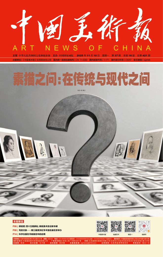 四、聚焦艺术本体,实践相互促进。素描作为造型艺术的基础,在数字技术与观念艺术冲击下,其地位一度受到质疑。2025年推出的“素描之问:在传统与现代之间”专题,邀请靳尚谊、冯远、刘万鸣等国内数十名权威学者和艺术家展开深度对话,这一讨论不仅厘清了素描在中西艺术教育中的功能边界,更重申了基础训练在当代艺术生态中的不可替代性。中华人民共和国成立以来,全国画院建设逐步取得了长足发展,并涌现了一批批具有时代风向标意义的艺术家,创作了数量众多的经典力作。连续举办了九届的“全国画院美术作品展览”,整体上代表了画院系统当前的创作面貌和实力水平,呈现出独有的艺术特色与学术价值,学术选题“画院展的艺术特色与学术价值”全面而系统地讨论了画院系统的创作现状与未来发展方向。系列专题“山水画创作的时代精神与语言革新学术研讨会暨提名展”“人物画创作的时代精神与语言革新学术研讨会暨邀请展”旨在将理论与创作更加紧密地结合,从当下创作的现实出发,推动理论研究与艺术实践相互促进,努力从实践中发现问题、研究问题、解决问题,坚持学术探讨,不断凝聚共识,推动理论建设,构建中国特色艺术话语体系,为中国艺术守正创新、培根铸魂贡献积极力量。此外,为深入学习贯彻习近平总书记在文化传承发展座谈会上的重要讲话精神,本报策划系列专题“新时代中国画的传承与发展”“新时代雕塑的传承与发展”“新时代壁画的传承与发展”“新时代中国版画的传承与发展”“中国油画的传承与发展”。“探讨画院人才培养机制 共谋新时代画院创作发展”专题旨在深入探讨新时代画院发展的成就与问题,聚焦当代画院创作研究和人才培养的创新路径,以及深化管理机制等议题,为推动画院系统的持续繁荣贡献智慧与力量。